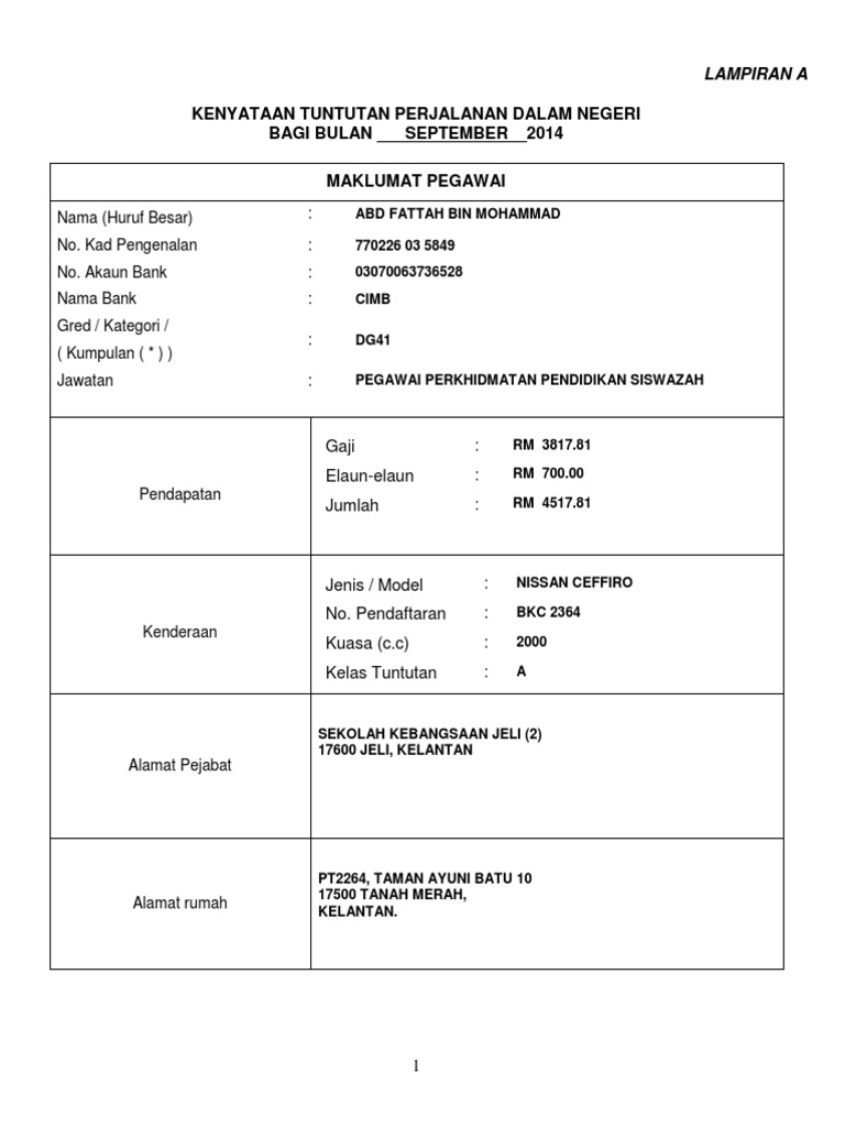 Contoh Cara Mengisi Borang Tuntutan Perjalanan Kakitangan Awam Yang Sungguh Lengkap Kisah Sekitar Kita